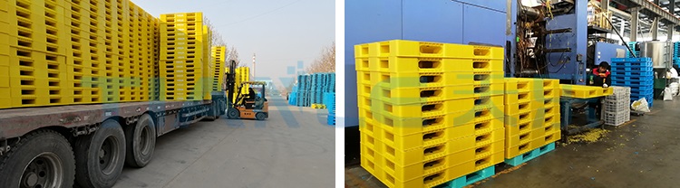糧食米業(yè)客戶(hù)采用我天樂(lè)塑業(yè)公司生產(chǎn)的1412雙面網(wǎng)格塑料托盤(pán),客戶(hù)定制有著豐收之意的金燦燦的黃色托盤(pán),托盤(pán)采用四向進(jìn)叉,動(dòng)載達(dá)1.5T,靜載達(dá)6T,雙面塑料托盤(pán)多用于化工化肥、飼料面粉、糧食米業(yè)等行業(yè)貨物平地周轉(zhuǎn)、倉(cāng)儲(chǔ)墊貨。